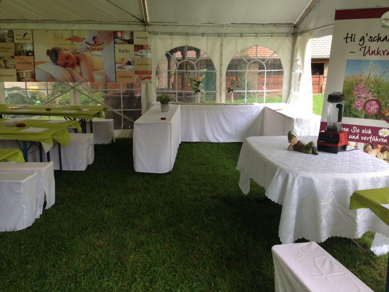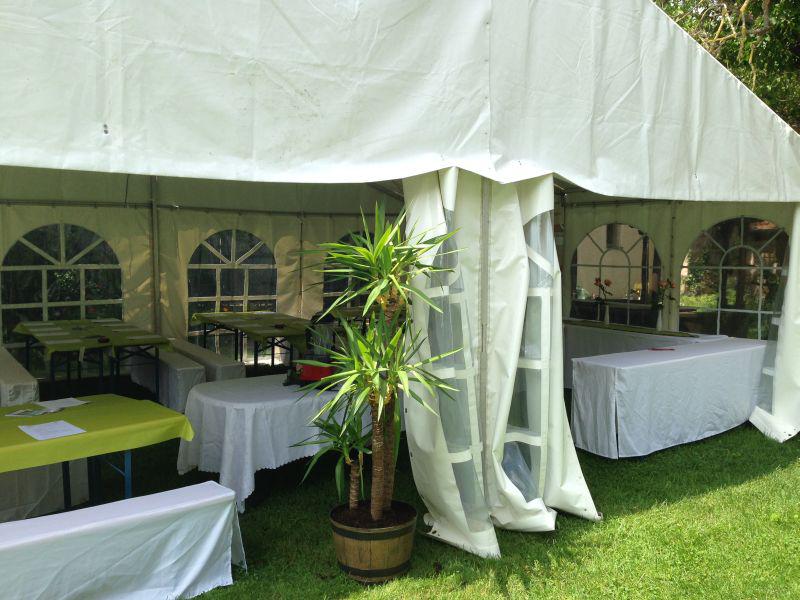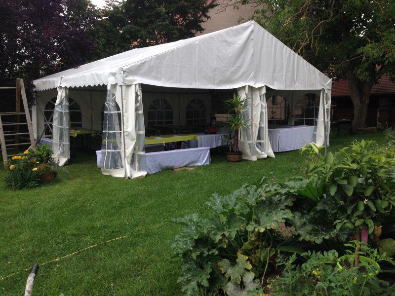 - Im hinteren Garten, gibt es eine große Wiese mit der Möglichkeit ein großes Zelt aufzubauen